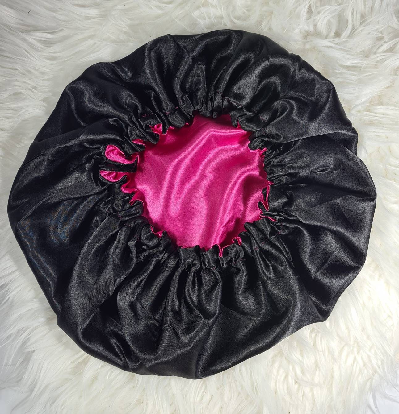 Our beautiful silky-smooth reversible satin hair Bonnet is handmade with Premium quality satin fabric. Great way to protect your hairstyle day time and night. Very comfortable to wear made with