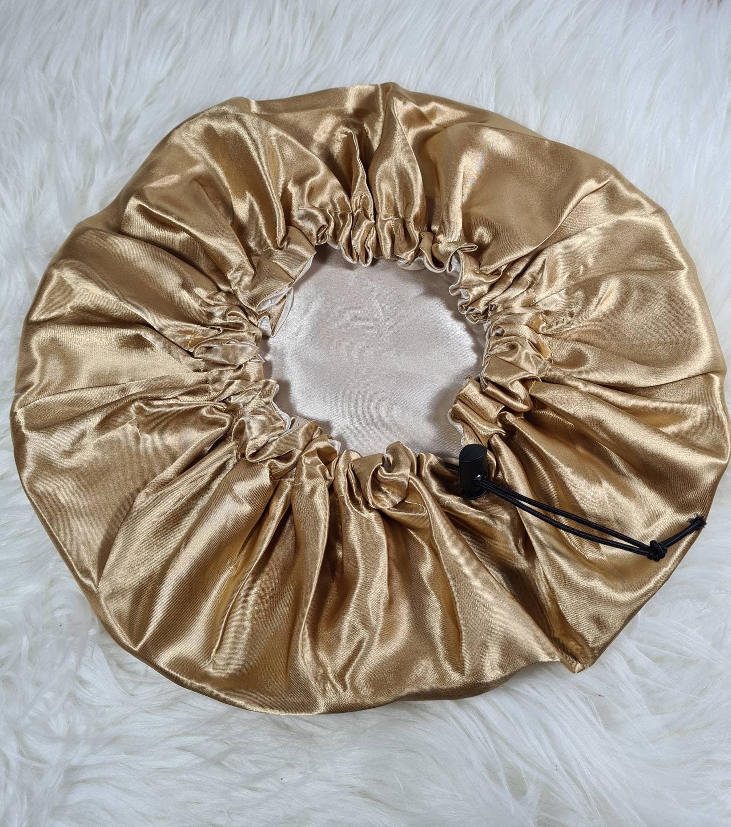 Gold Adjustable Drawstring Reversible Satin hair bonnet|Satin Elasticated, Sleep Hat Bonnet, Night Cap, Protecting Hairstyle.