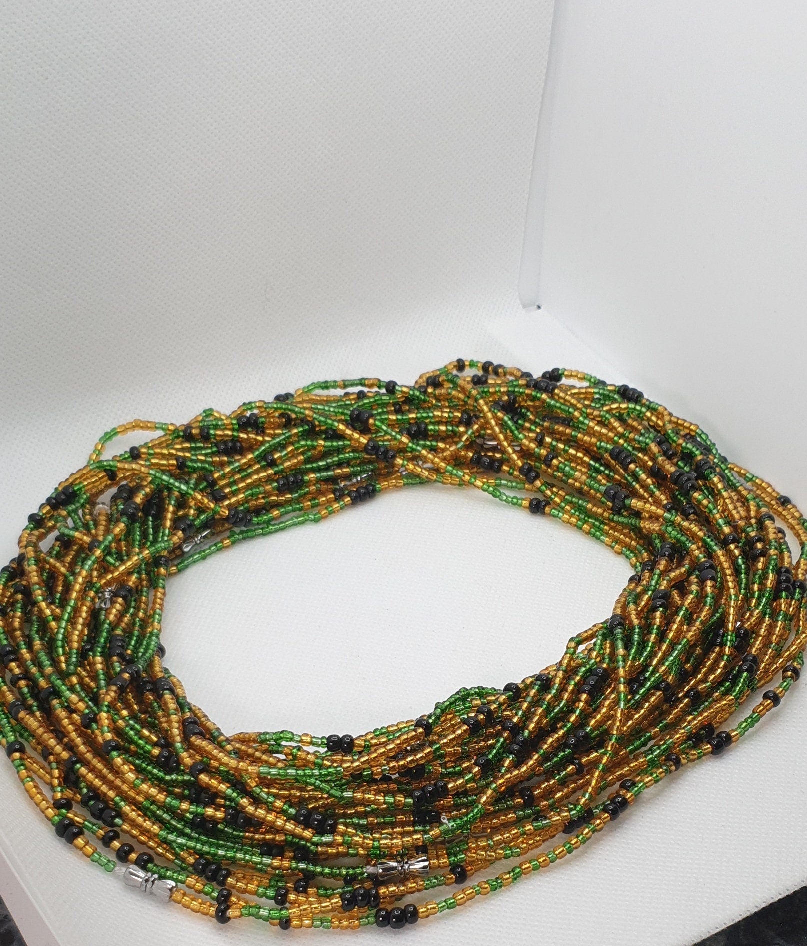 Gold|Green And Black Waist Beads|On Sale Belly Chain Weight control African beads|belly beads Africa Beads|Jamaica beads