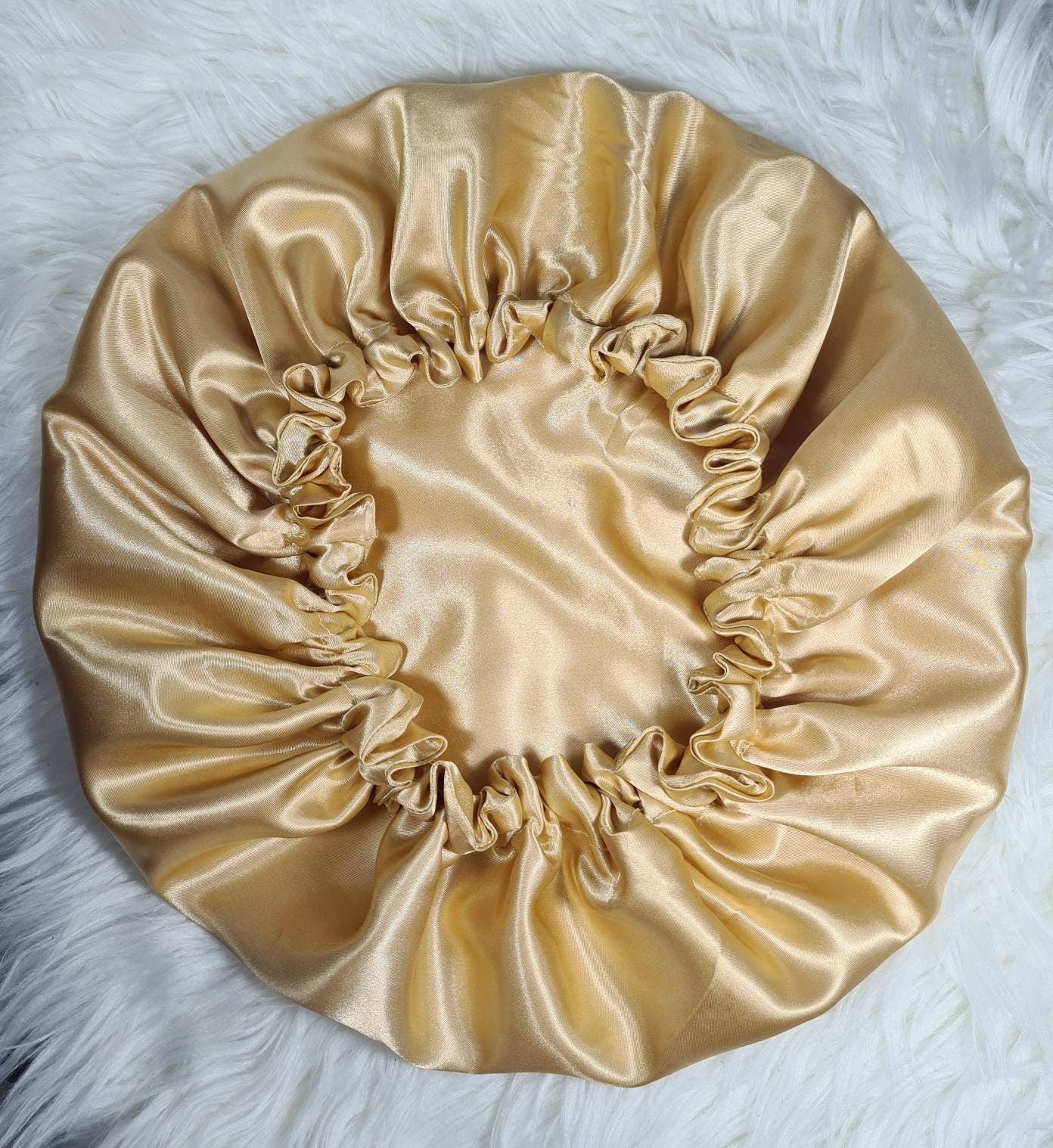 Gold Reversible Satin hair bonnet Satin Elasticated, Sleep Hat Bonnet, Headscarf. Night Sleep, Protecting Hairstyle,