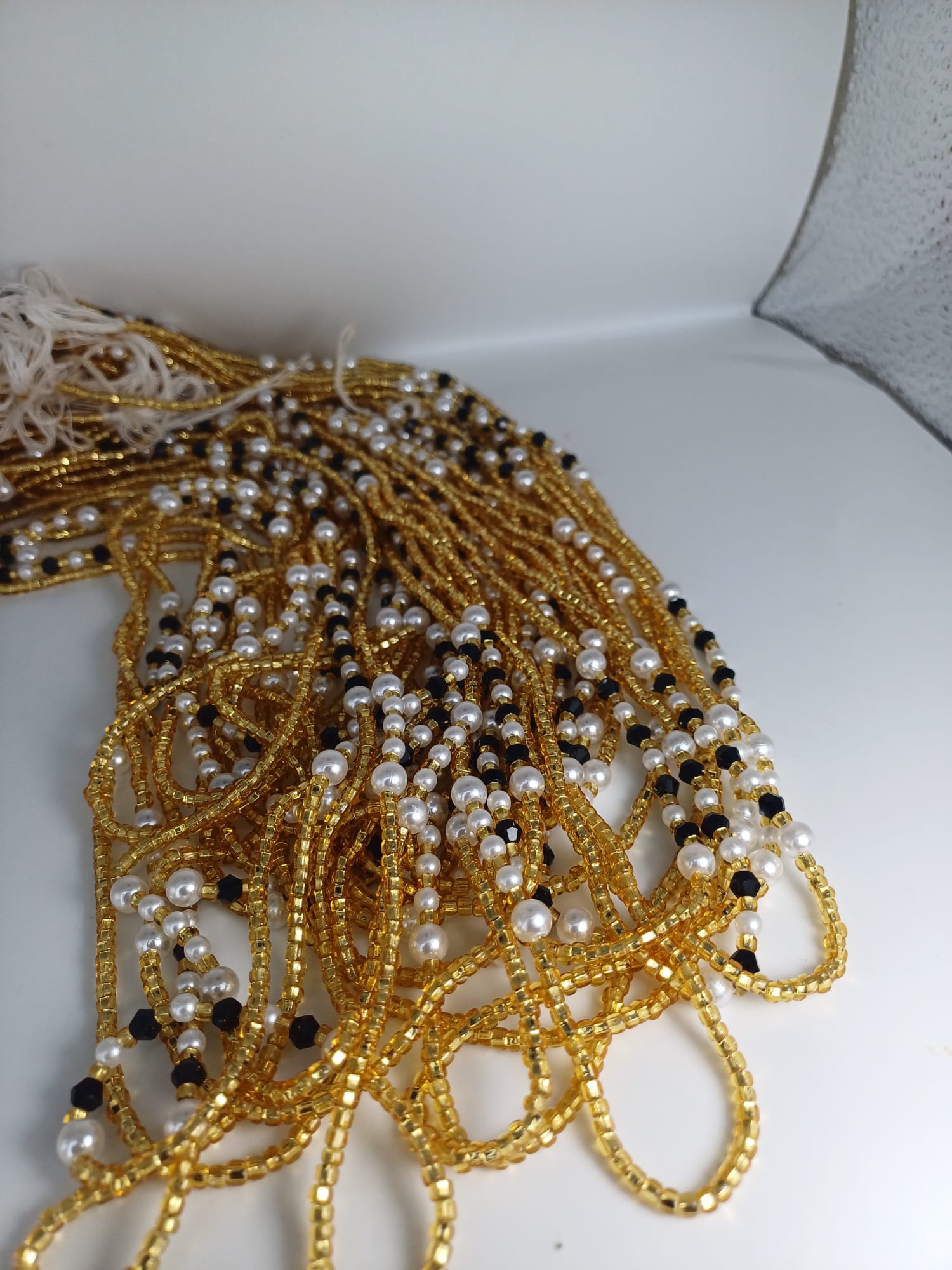 Pearl and black diamond Waist Beads|On Sale Belly Chain Weight control African beads|belly beads| Ghana beads| Weight Tracker| Nigerian waist beads
