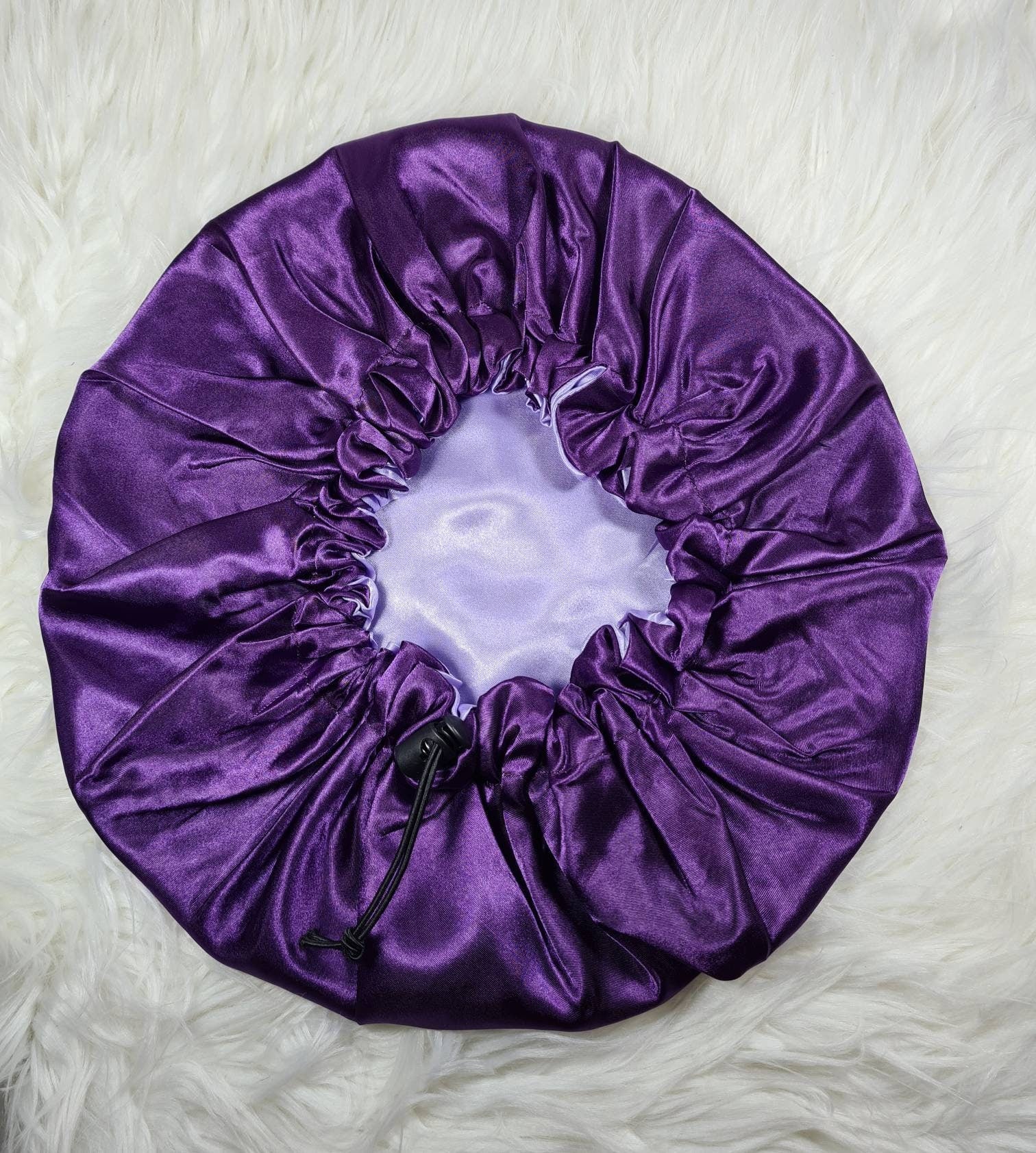 Purple Adjustable Drawstring Reversible Satin hair bonnet|Satin Elasticated, Sleep Hat Bonnet, Night Cap, Protecting Hairstyle.