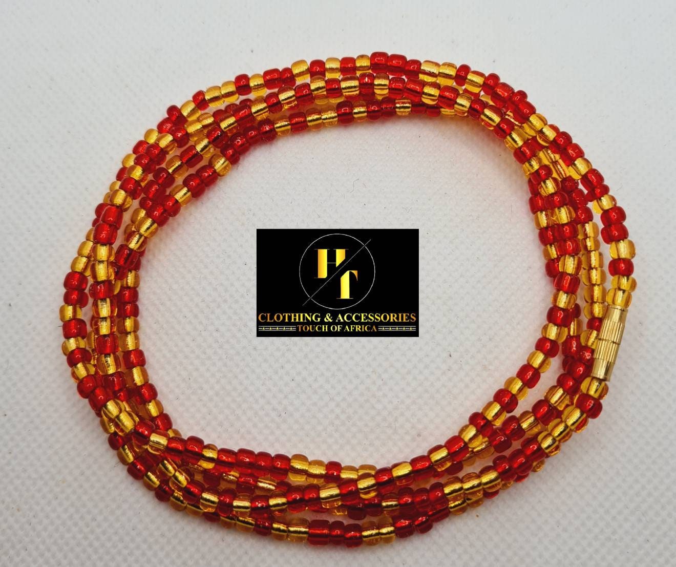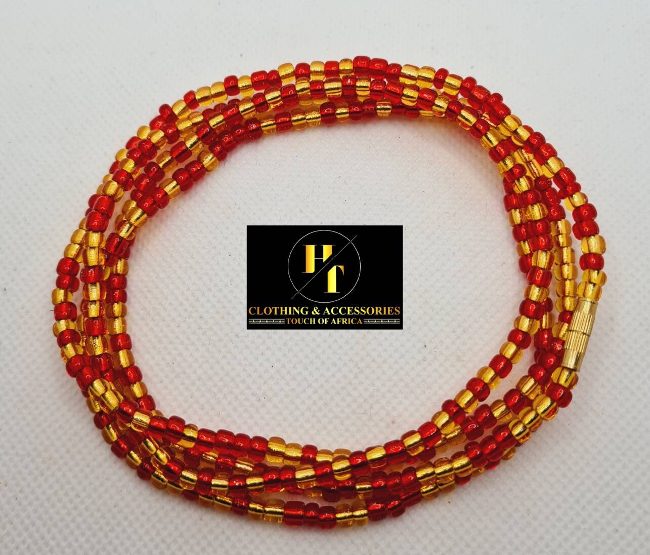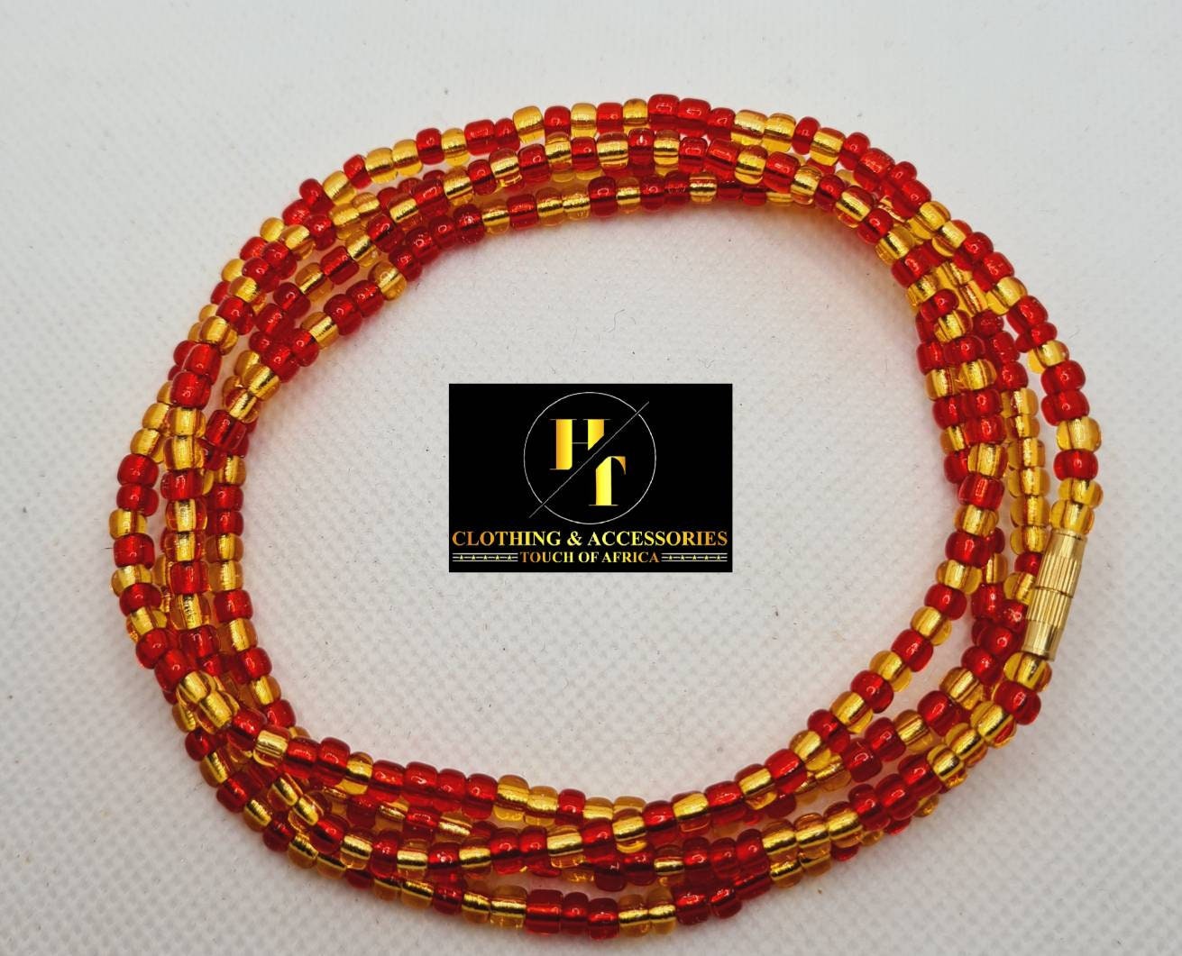 Red And God Waist Beads|On Sale Belly Chain Weight control African beads|belly beads| Ghana beads| Weight Tracker| Nigerian waist beads