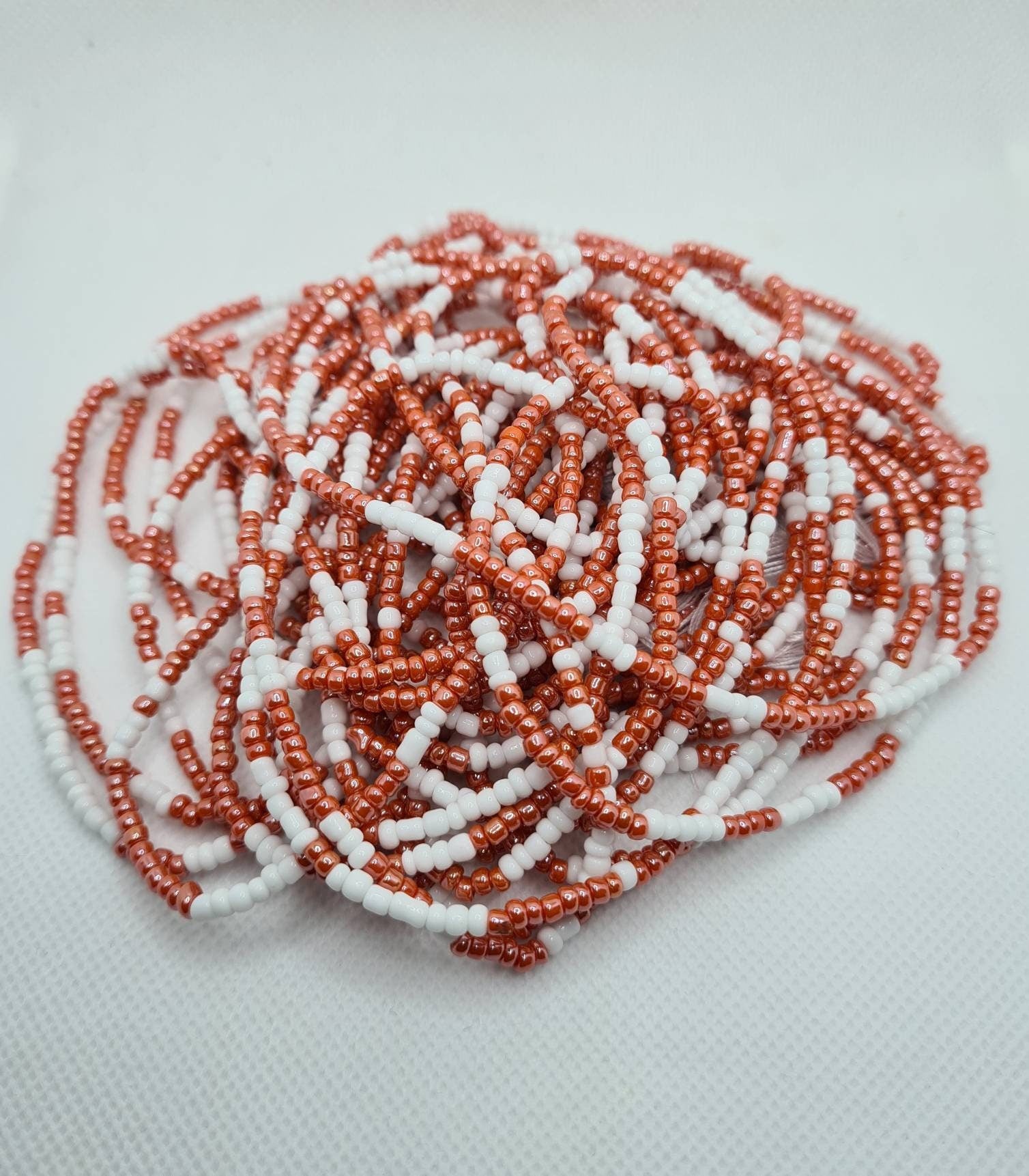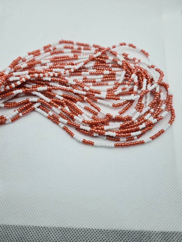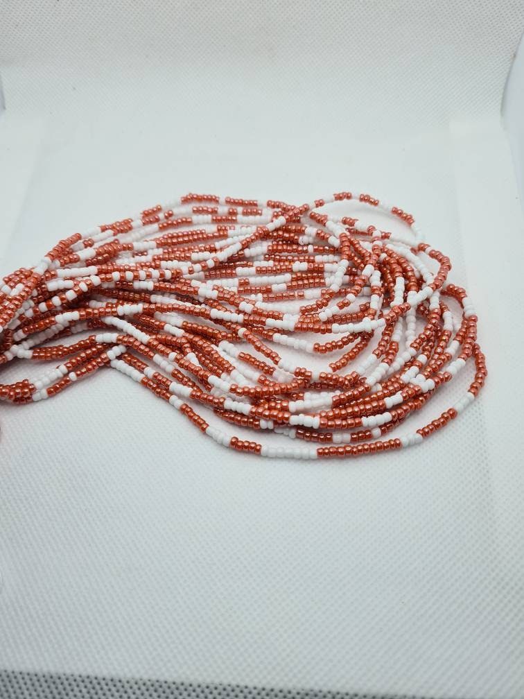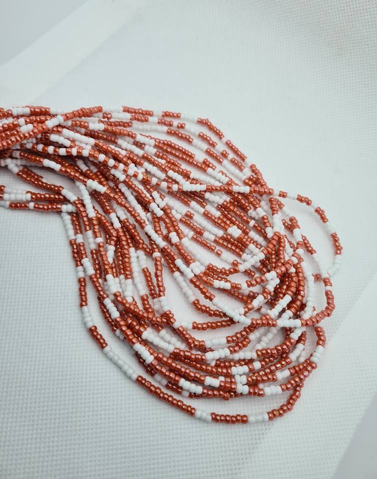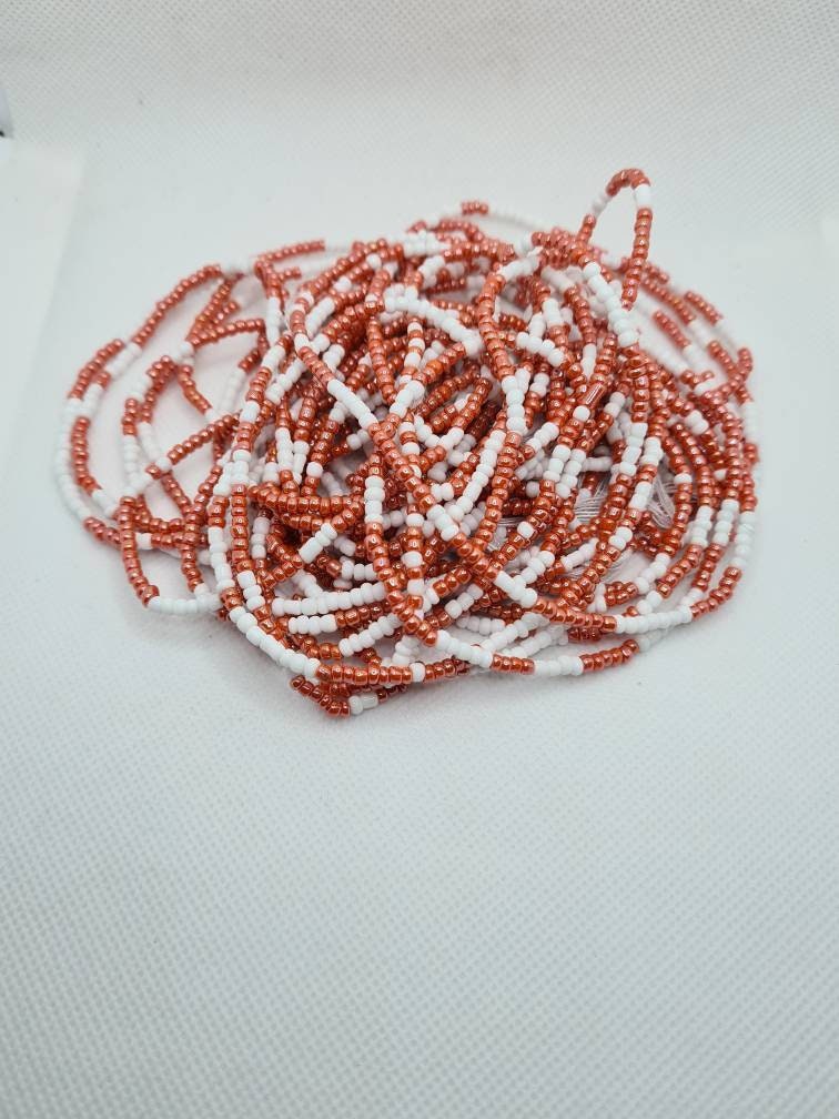 White And Peach Waist Beads|On Sale Belly Chain Weight control African beads|belly beads| Ghana beads| Weight Tracker/ Nigerian waist beads
